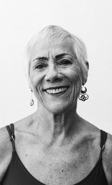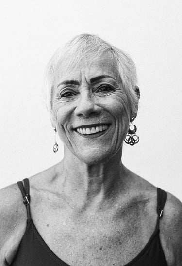 Aos 70 anos, seu corpo desafia a ditadura da juventude: forte, dourado, coroado pela prata dos fios que tingem sua cabeça.